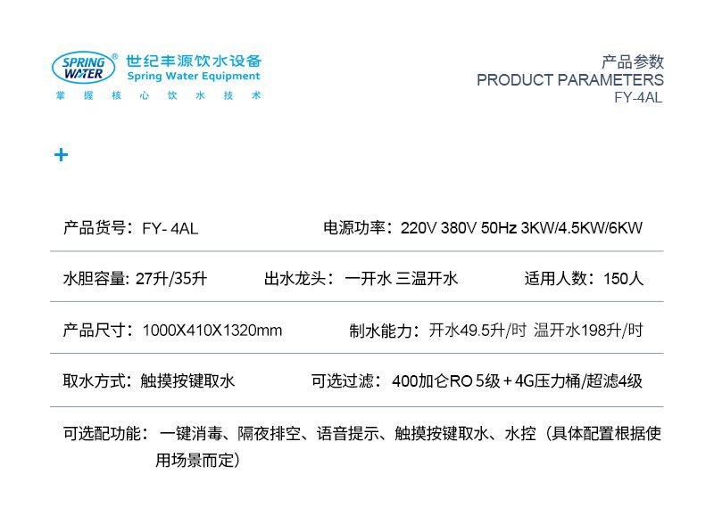相關(guān)標(biāo)簽:反滲透水處理 150人用開水溫開水節(jié)能飲水機(jī)觸摸型、型、號:FY-4AL