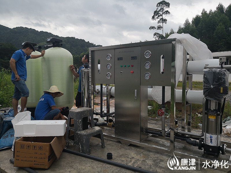本月初在上林養(yǎng)殖場(chǎng)完工一臺(tái)純凈水直飲設(shè)備,該設(shè)備采用高品質(zhì)反滲透膜技術(shù)、優(yōu)質(zhì)304不銹鋼管路、不銹鋼過(guò)濾罐體、PLC微電腦控制系統(tǒng)、PLC簡(jiǎn)易觸屏控制面板。整套直飲水設(shè)備的過(guò)濾流程為山泉水→原水箱→原水泵→石英砂過(guò)濾器→活性炭過(guò)濾器→(阻垢劑加藥裝置)→保安過(guò)濾器→高壓泵→反滲透裝置