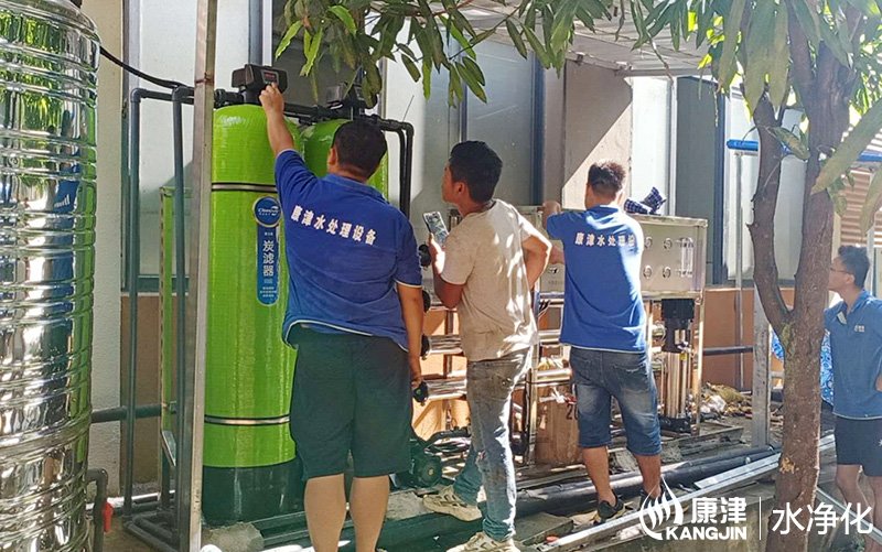 工藝流程:原水箱-原水泵-石英砂過濾器-活性炭過濾器-精密過濾器-反滲透設(shè)備-凈水箱-變頻供水-各點用水