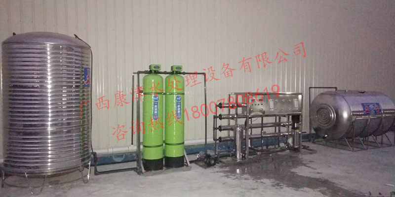 工藝流程:原水箱-原水泵-石英砂過濾器-活性炭過濾器-精密過濾器-反滲透設(shè)備-水池