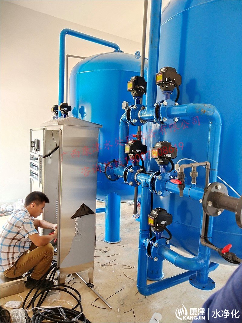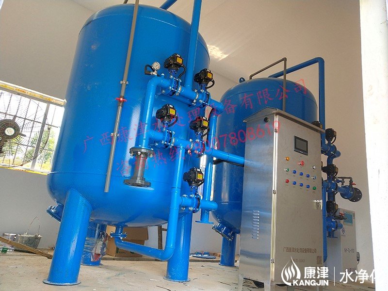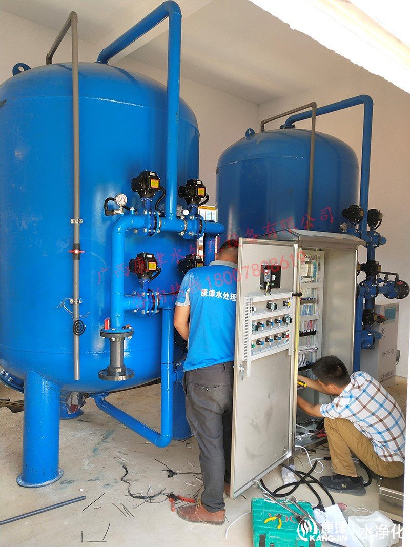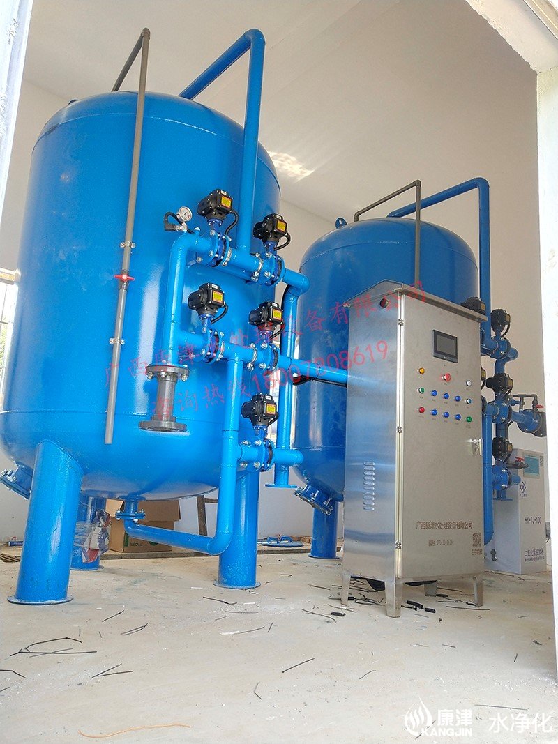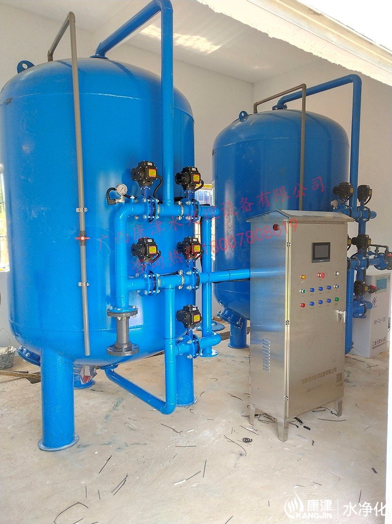 項(xiàng)目名稱:貴港公王村河水凈化工程 設(shè)備名稱:30噸壓力式凈水設(shè)備 工藝流程:河水-石英砂過濾器(二級過濾)-二氧化氯消毒...
