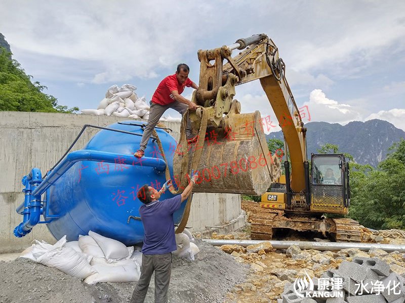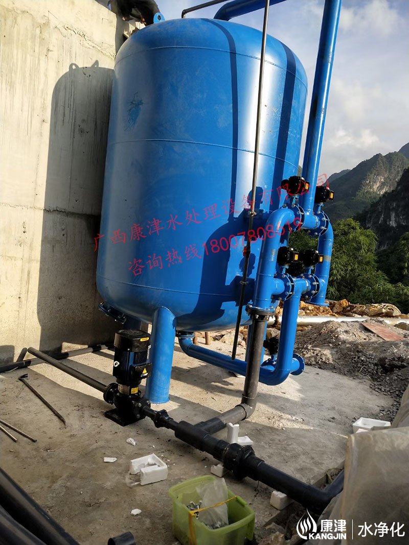 項目名稱:百色市凌云縣伶站瑤族鄉(xiāng)40噸壓力式一體化凈水設(shè)備 設(shè)備名稱:40噸壓力式一體化凈水設(shè)備 工藝流程:河水-絮凝加藥-石英砂過濾器-二氧化氯加藥器-凈水箱-各用水點...