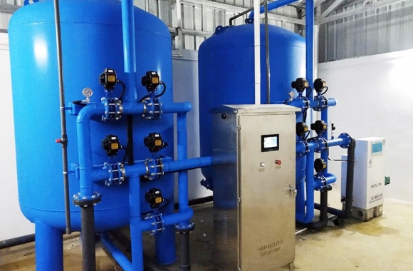 設(shè)備是壓力式的,其原理是當(dāng)原水自上而下通過濾料時,水中懸浮物由于吸附和機(jī)械阻流作用被濾層表面截留下來;當(dāng)水流進(jìn)濾層中間時,由于濾料層中的砂粒排列的更緊密,使水中微粒有更多的機(jī)會與砂粒碰撞,于是水中凝絮物、懸浮物和砂粒表面相互粘附,水中雜質(zhì)截留在濾料層中,從而得到澄清的水質(zhì)。經(jīng)過濾后的出水懸浮物可在3毫克/升以下。