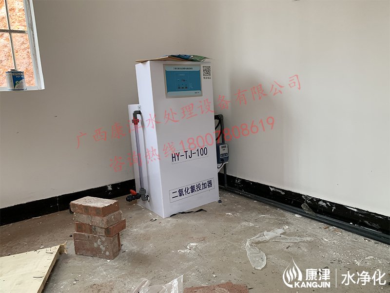 工藝流程:山泉水-絮凝投加器-石英砂過濾器(二級(jí)過濾)-二氧化氯加藥器-凈水池