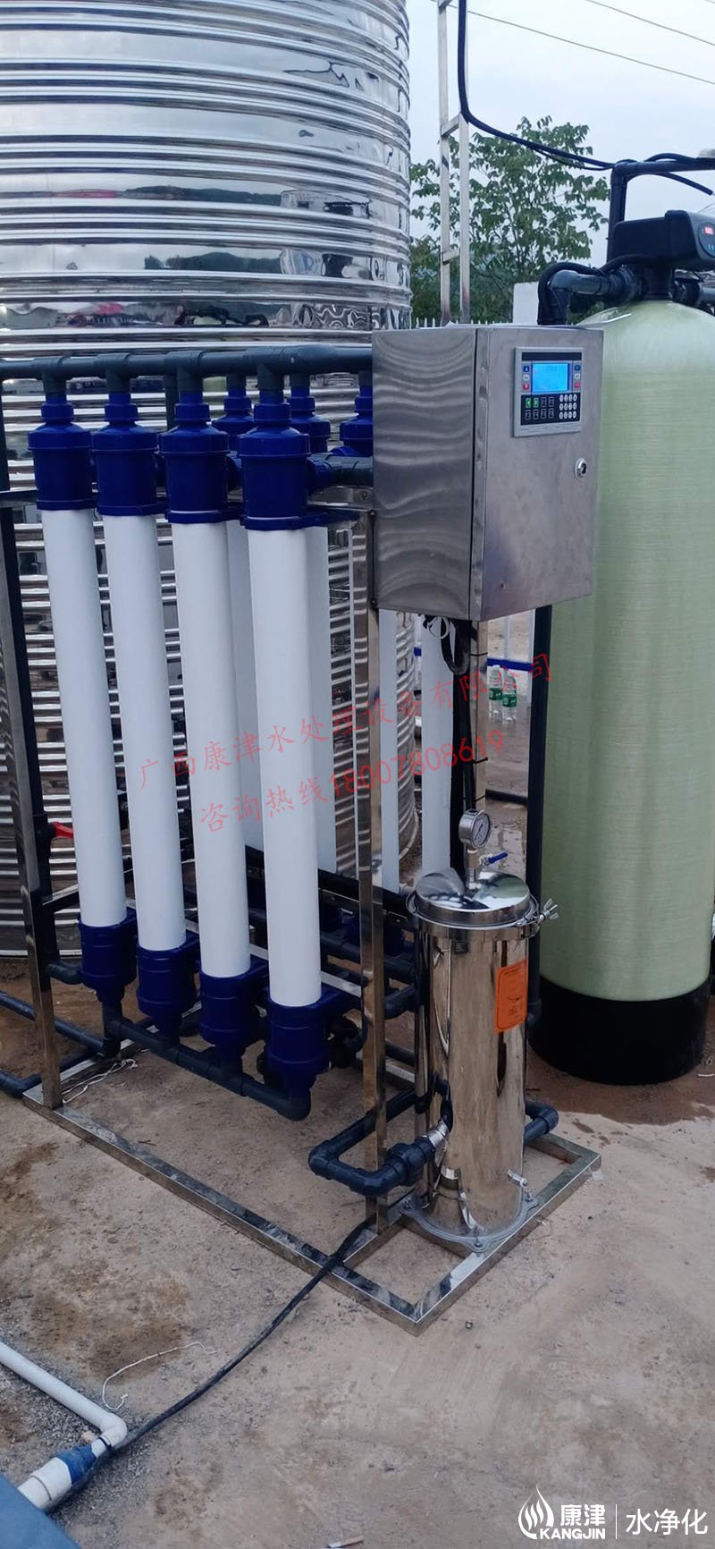 工藝流程:井水-原水箱-原水泵-石英砂過(guò)濾器-超濾-凈水箱