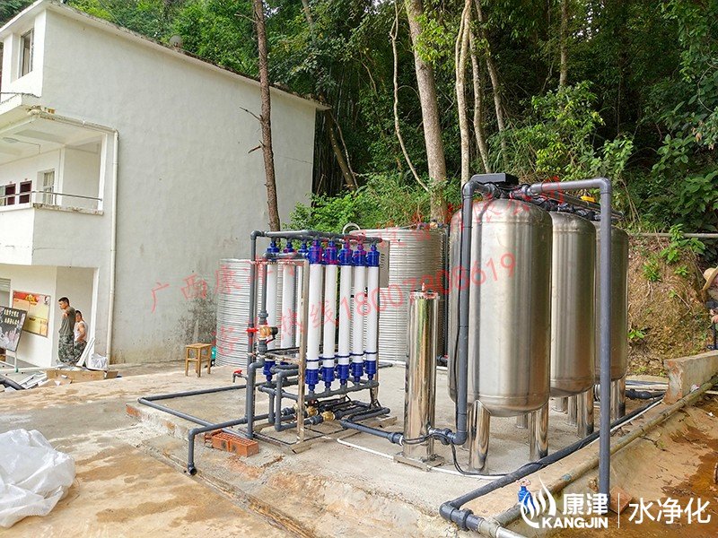 工藝流程:地下水-原水箱-原水泵-錳砂過濾器-石英砂過濾器-活性炭過濾器-精密過濾器-超濾設(shè)備-紫外線殺菌-凈水箱-變頻供水-用水點