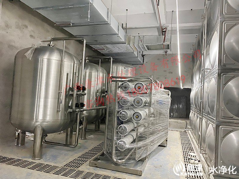 工藝流程:井水-原水箱-原水泵-石英砂過濾器-活性炭過濾器-阻垢裝置-保安過濾器-雙級反滲透設備-無菌水箱