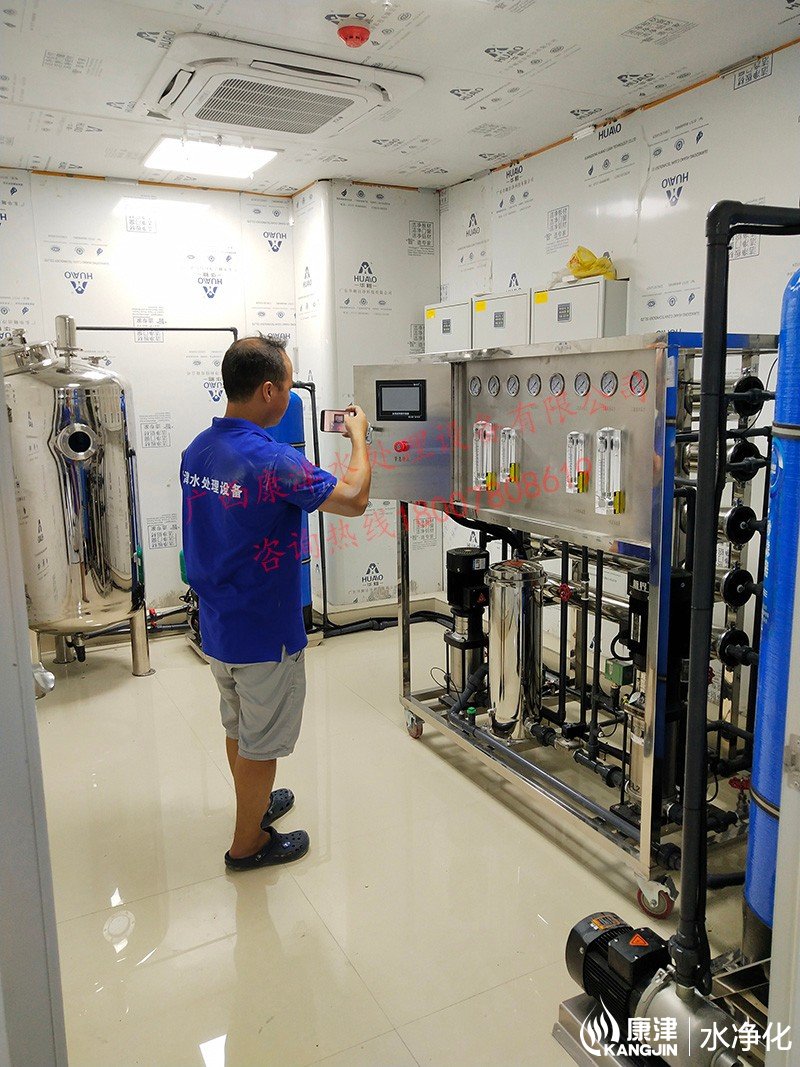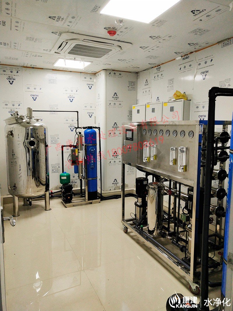 工藝流程:原水-原水泵-石英砂過濾器-活性炭過濾器-反滲透設(shè)備-精密過濾器-軟化水設(shè)備-凈水箱-變頻供水回水殺菌系統(tǒng)-用水點