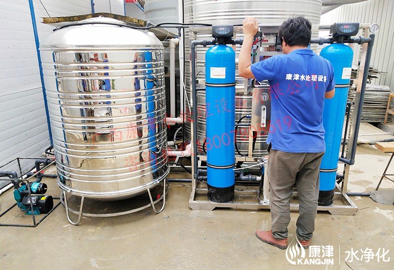 項(xiàng)目名稱:中交武鳴區(qū)項(xiàng)目部直飲水設(shè)備 設(shè)備名稱:0.5噸反滲透純凈水設(shè)備 工藝流程:原水箱-原水泵-石英砂過濾器-活性炭過濾器-精密過濾器-反滲透設(shè)備-凈水箱-變頻供水-各用水點(diǎn)...