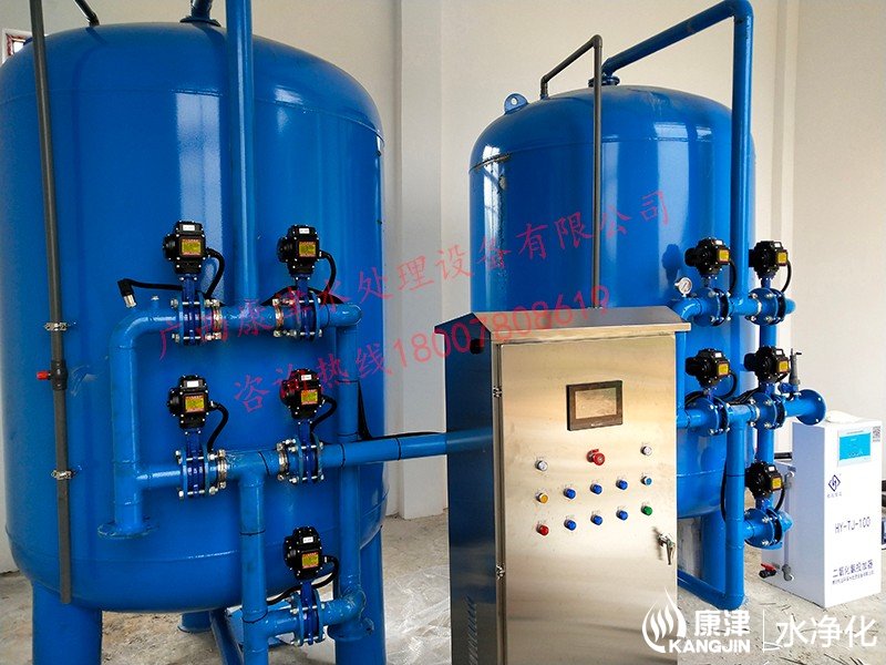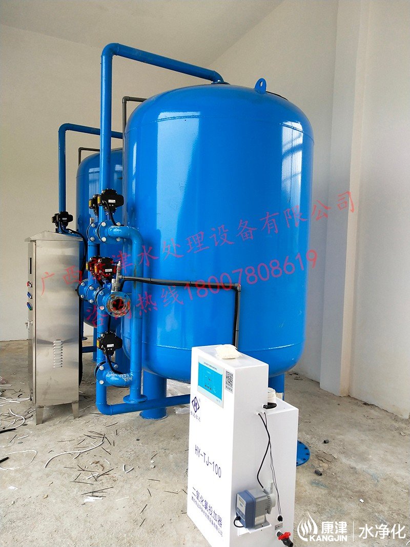 工藝流程:山泉水-石英砂過濾器-二級過濾-二氧化氯加藥器-用水點