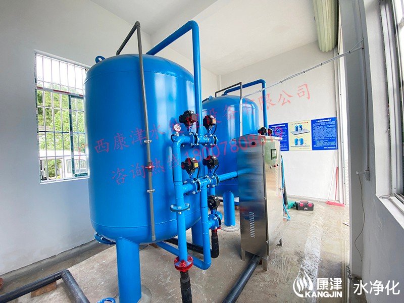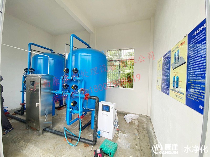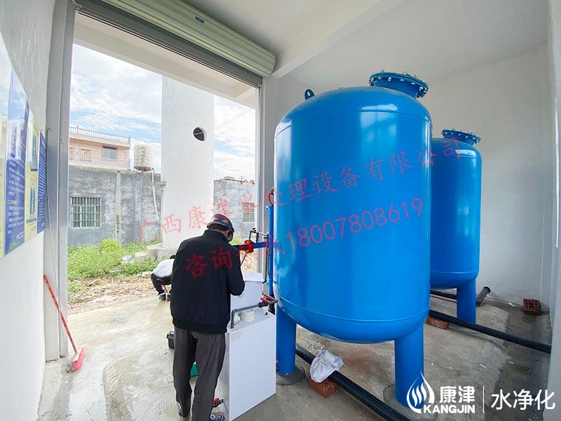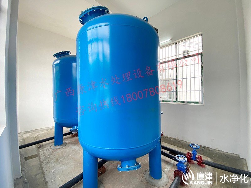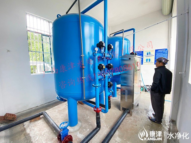 項目名稱:貴港石寨村地下水凈化工程 設(shè)備名稱:30噸壓力式凈水設(shè)備 工藝流程:河水-石英砂過濾器(二級過濾)-二氧化氯消毒...