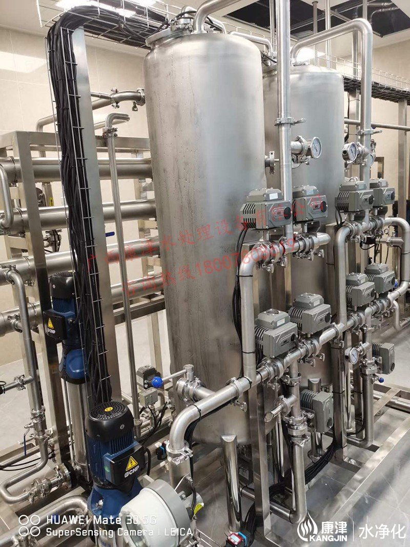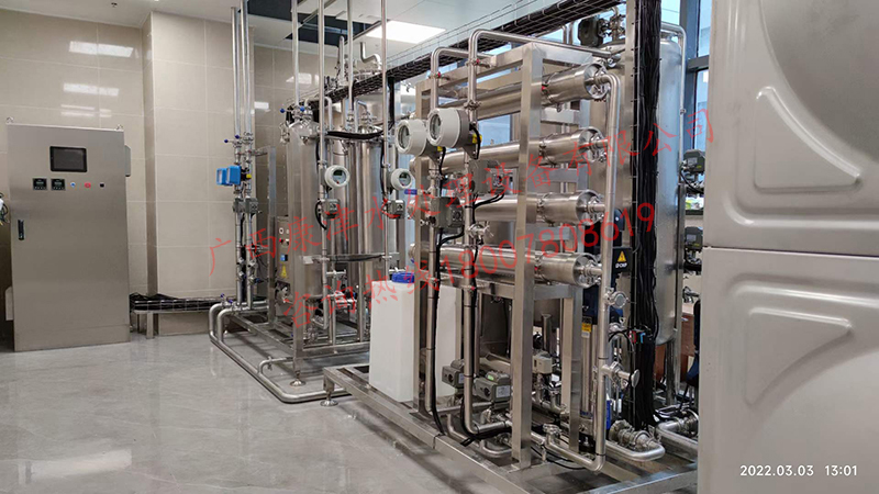 工藝流程:原水箱-原水泵-石英砂過濾器-活性炭過濾器-精密過濾器-紫外線殺菌器-增壓泵-反滲透膜組-加藥系統(tǒng)-無菌水箱-紫外線消毒殺菌器-除菌過濾器-變頻恒壓供水系統(tǒng)-用水點(diǎn)