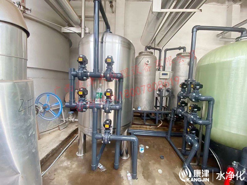 工藝流程:地下水+自來水-水箱-石英砂過濾器-軟化水設(shè)備1-軟化水設(shè)備2-精密過濾器-各用水點(diǎn)