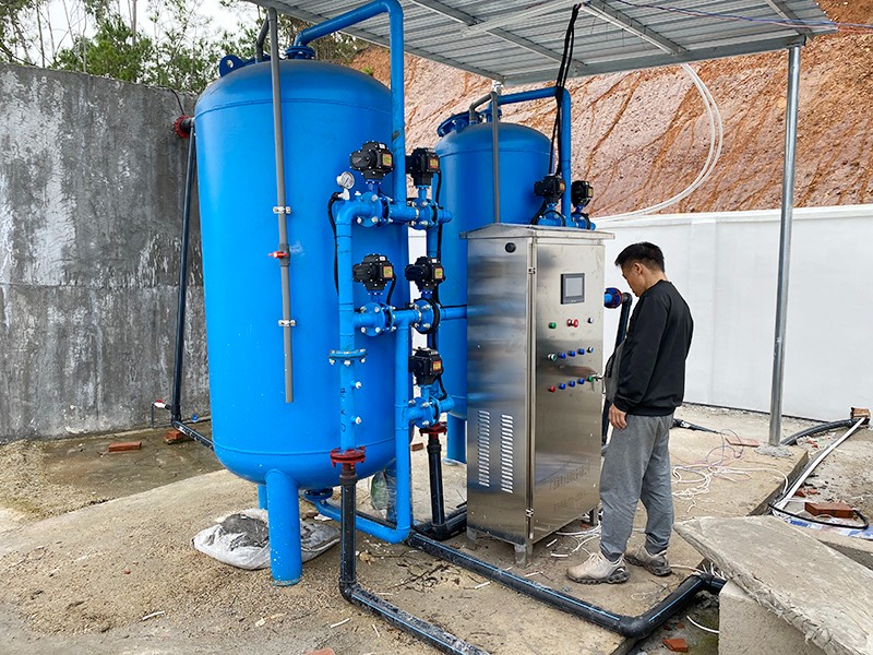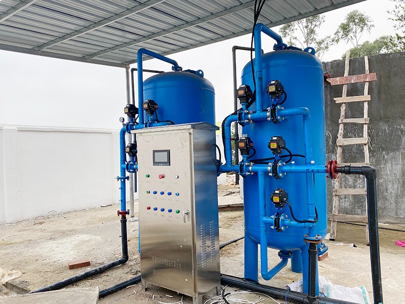 本方案主要針對(duì)原水為河水、地下水、自來(lái)水等地區(qū),水源通常比較渾濁,水面漂浮臟東西、樹(shù)葉、水藻等,尤其在暴雨季節(jié),水中泥沙量增加,雜質(zhì)多等情況。因此利用填料來(lái)降低水中 濁度,截留除去水中懸浮物、有機(jī)物膠質(zhì)顆粒,是給水凈化的重要水處理設(shè)備??到蛩幚頌楦鶕?jù)實(shí)際用途情況制定以下解決方案。用水處理量每小時(shí)約5-8噸。