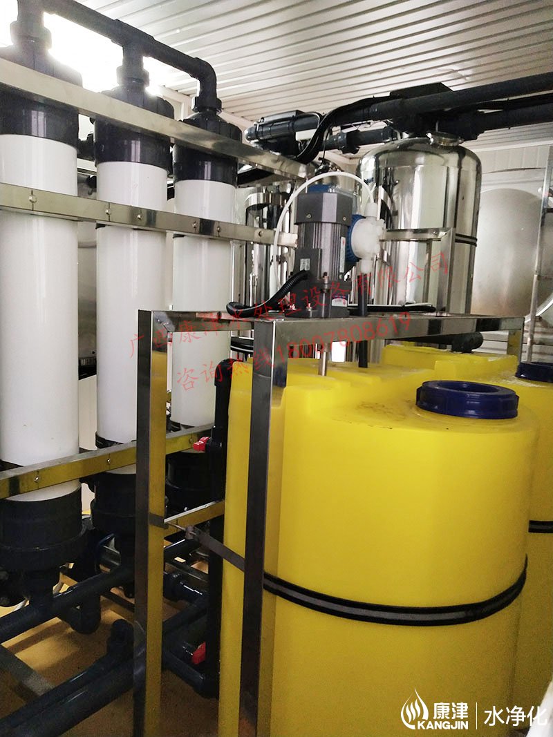 工藝流程:地下水-原水箱-原水泵-石英砂過濾器-活性炭過濾器-精密過濾器-加藥-超濾設(shè)備-二氧化氯消毒-凈水箱